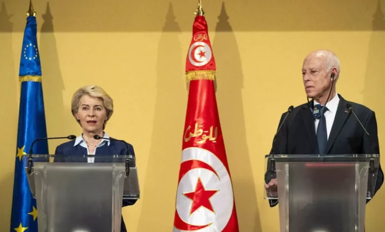 اتفقت رئيسة المفوضية الأوروبية “أورسولا فون دير لاين”، ورئيسة الوزراء الإيطالية “جورجيا ميلوني” ورئيس الوزراء الهولندي السابق “مارك روته”، إلى جانب الرئيس التونسي “قيس سعيد” على تنفيذ حزمة الشراكة الشاملة التي تم الإعلان عنها بشكل مشترك في 11 يونيو 2023. تغطي مذكرة التفاهم خمسة محاور رئيسية أهمها الهجرة. يتم تنفيذها من خلال مختلف مسارات التعاون بين الاتحاد الأوروبي وتونس، وفقًا للأنظمة والإجراءات المعمول بها.